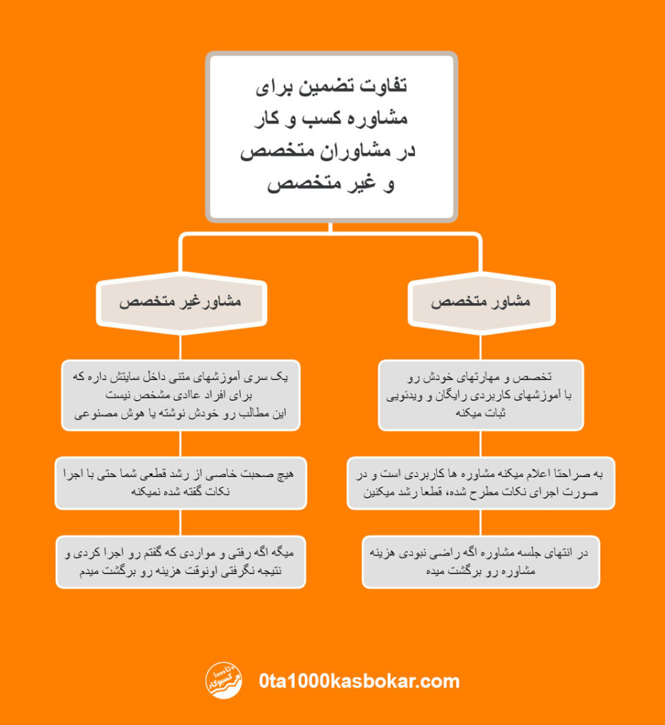 - مشاوره از قبل از انتخاب شغل تا بعد از رشد قطعی و حتمی کسب و کار (با 5 تضمین)